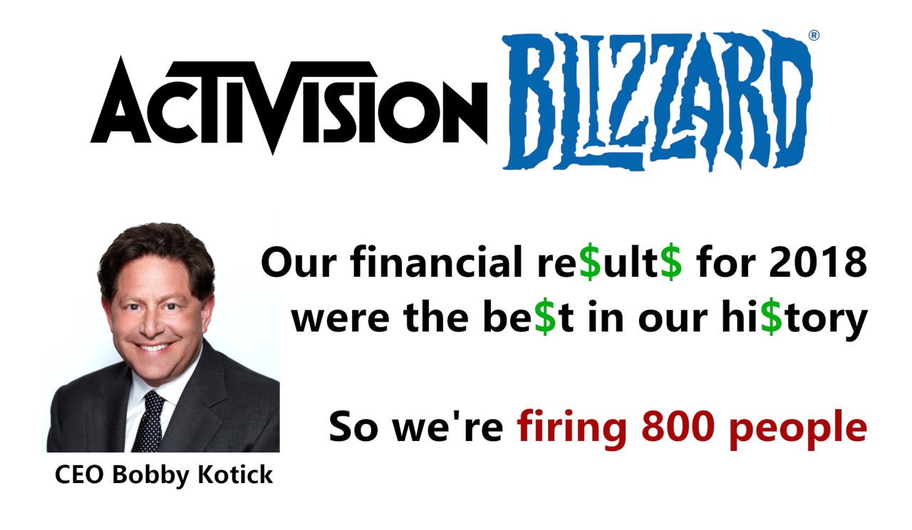 https://www.gamesindustry.biz/articles/2019-02-12-activision-blizzard-sees-record-year-plans-to-decrease-net-headcount-by-8-percent record profits results in firing of 800 people